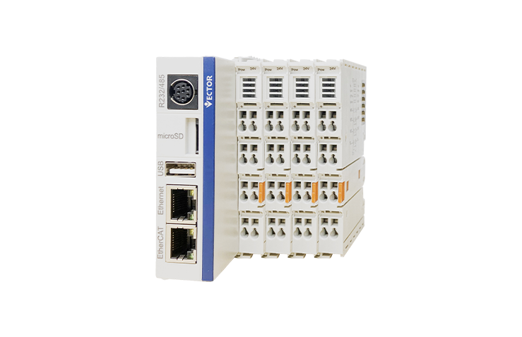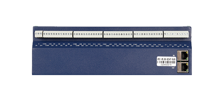 • 威科達VE系列運動控制器,搭載高性能CPU(4核1.6GHZ主頻)具有強大的運算能力,基于linux系統,采?CODESYS編程?具,?持IEC61131-3國際標準的6種編程語?的高性能運動控制器。標配EtherCAT工業以太網實時總線,可以實現最大64軸同步控制。